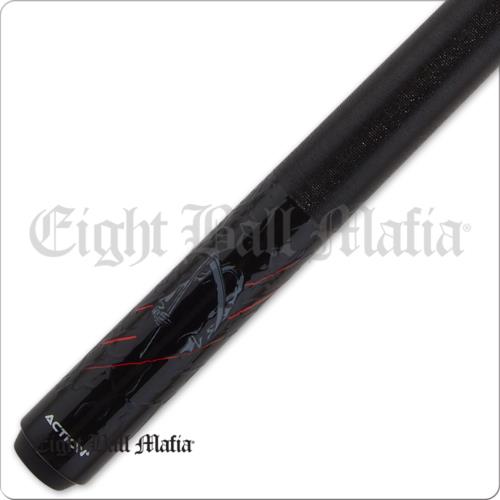 Butt Sleeve : Gloss black with grey Reaper and red slash design with textured crackle finish