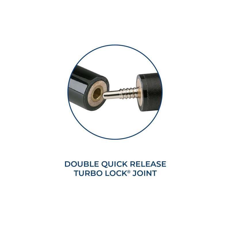Midnight black jump break cue with double quick-release joints, Matte Black wrap. Lifetime Guarantee even against warpage Made from 100% North American Grade A Hard Rock Maple 28oz. Weight